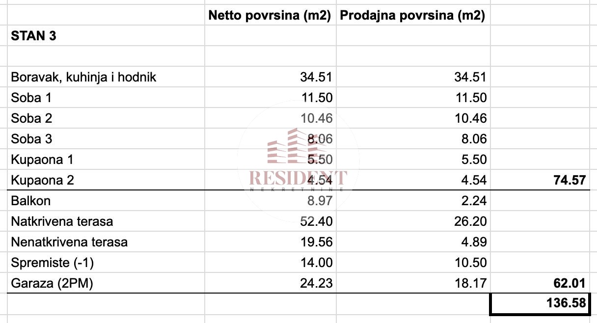 Također, stanu pripada i spremište od 14 m2 u podrumu i garaža od 24,23 m2 sa 2 parking mjesta.