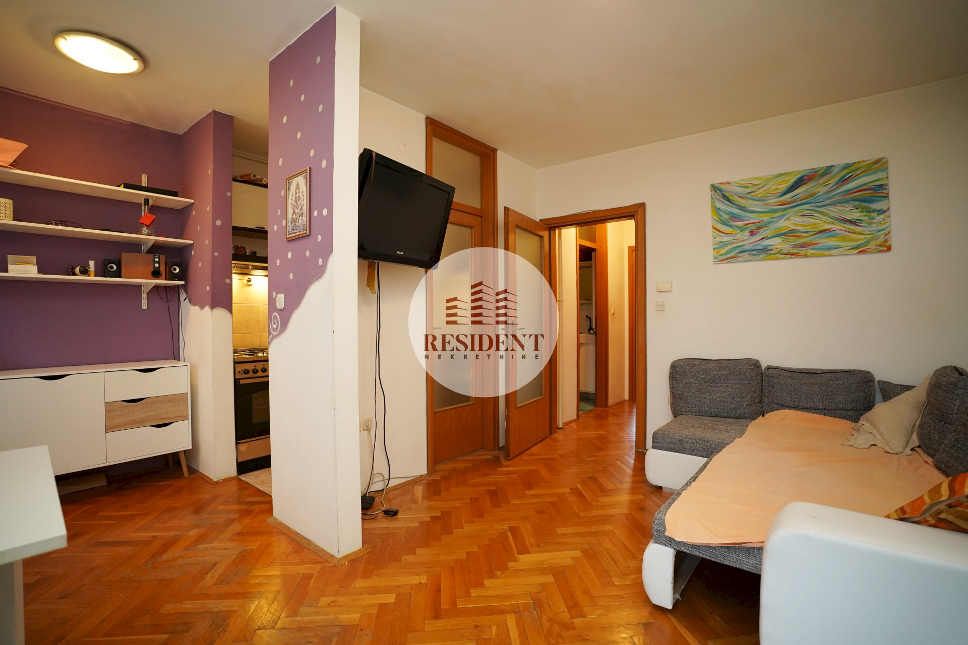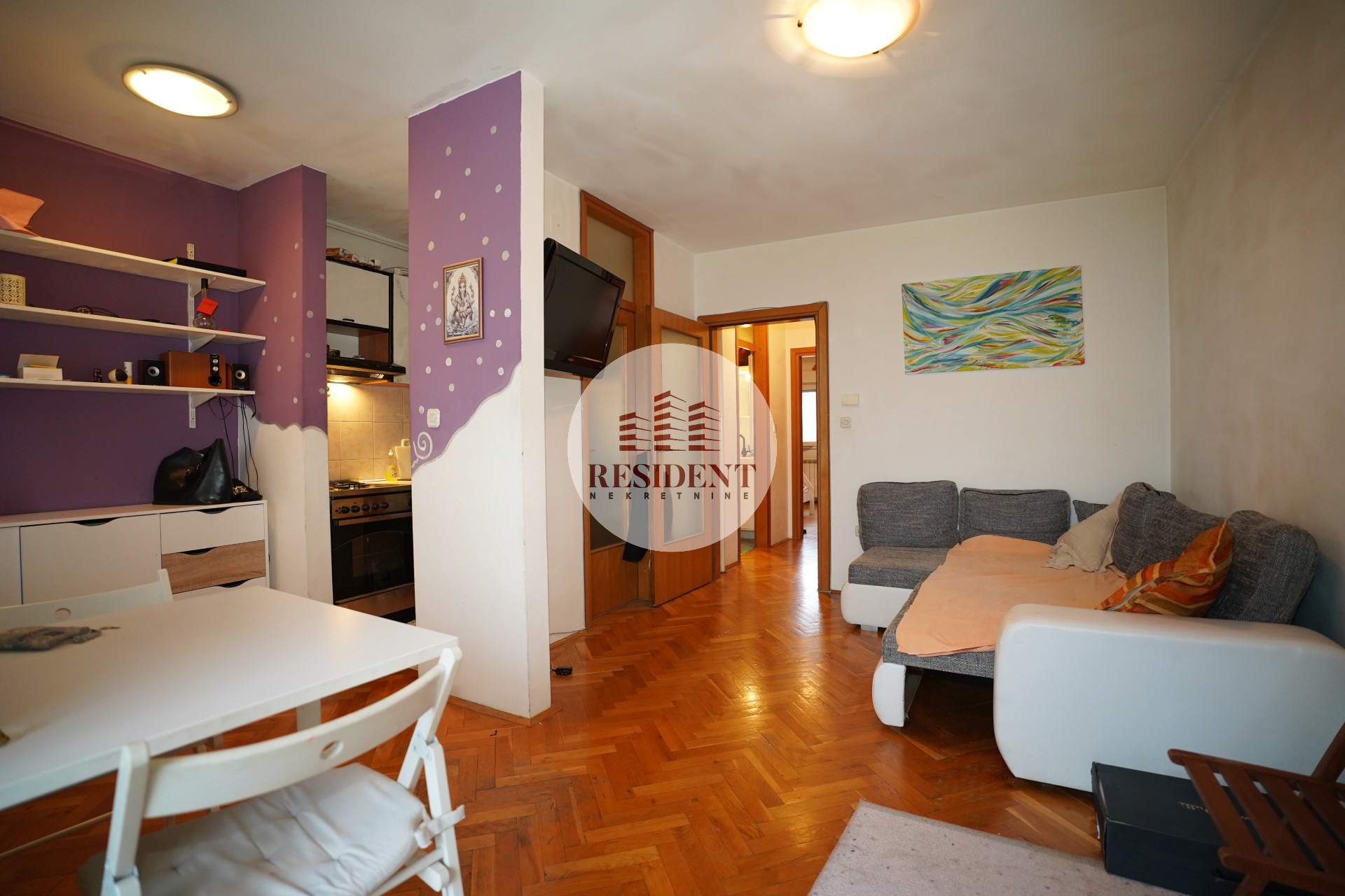 Stan je u dobrom stanju, no potrebno je pobrusiti i prelakirati hrastov parket te pokrečiti cijeli stan.